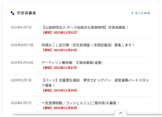 専門サイトならではのスピード感で募集情報をキャッチできるので、学芸員を目指すなら定期的にチェックしておくのがおすすめです。