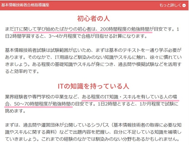基本情報技術者試験に合格するための勉強時間を確認しておきましょう。