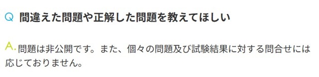 CBT試験の運営側では、試験結果や個別の問題内容についての問い合わせには対応していないと明記されています。