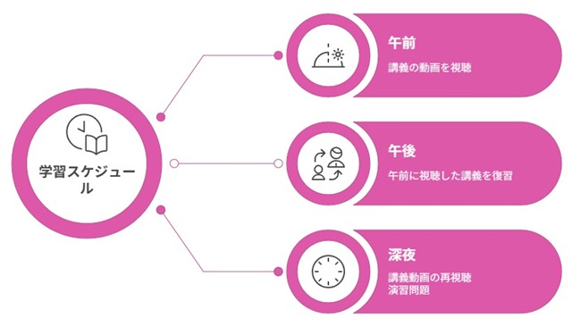 - 深夜:講義の動画を1.2倍速再視聴・演習問題など