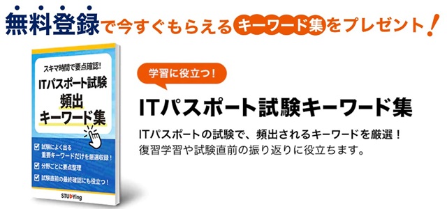 スタディングでは、ITパスポート試験でよく出る用語をまとめた「頻出キーワード集」を、無料登録でもらえます。