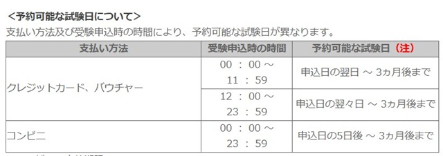 - 試験前日の正午まで受験申込みが可能(クレジットカード、バウチャーの場合のみ)