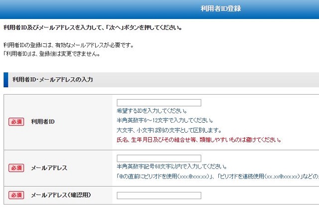 氏名・住所などの個人情報を登録して、自分のIDを作成します。