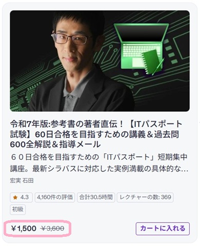 一例なので、他にも「ITパスポート」講義をUdemyで検索してみてください。