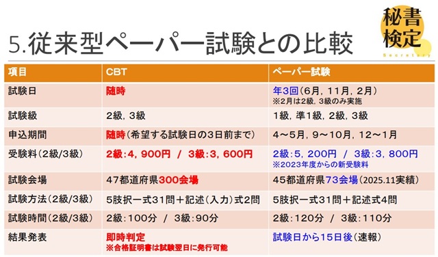 秘書検定cbt違い
